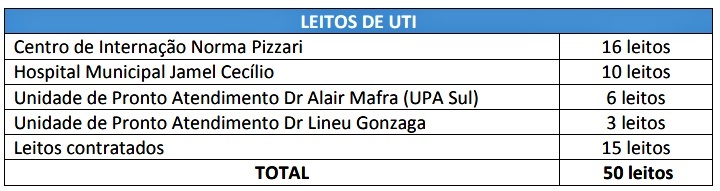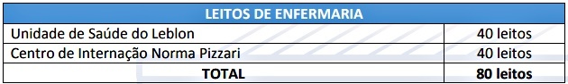 No caso do Município, com os 15 leitos contratados recentemente, a estrutura de enfrentamento à Covid-19, conta com 50 leitos de UTI e 80 de enfermaria, próprios do Município.