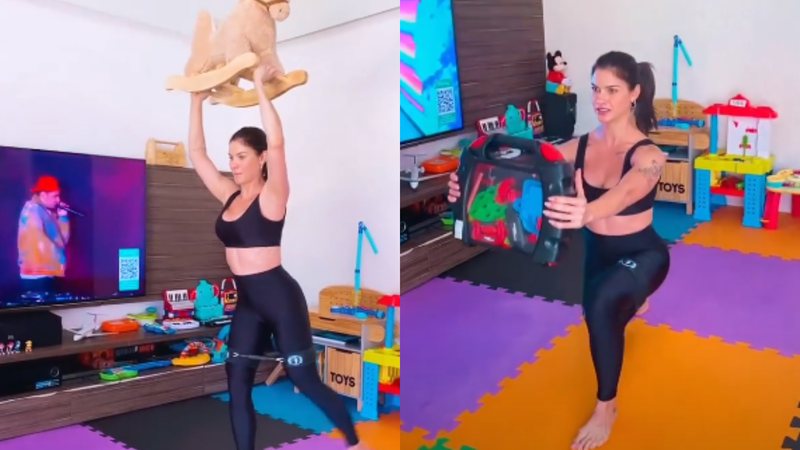 No vídeo, é possível ver Andressa levantando um cavalinho de madeira coberto de pelúcia, visando fortalecer os músculos do braço. Ela ainda brincou e incentivou as demais mamães a usarem os objetos dos pequenos para malhar. “Mães, tem esse brinquedo em casa? Pode ser outro também”, falou.