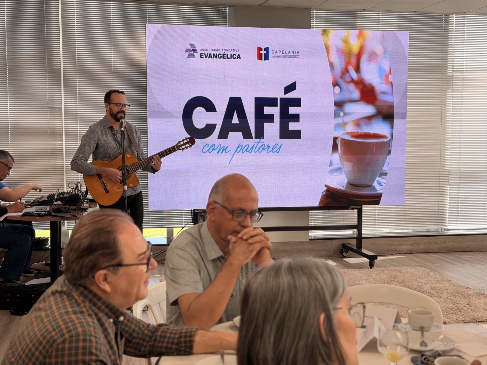 Na manhã desta quarta-feira, 11 de março, a Associação Educativa Evangélica (AEE), através da Capelania Institucional, realizou o Café com Pastores, um encontro especial de comunhão e gratidão pelos 79 anos da instituição. O evento aconteceu no Edifício Daisy Fanstone, reunindo líderes religiosos, representantes de igrejas e autoridades institucionais.