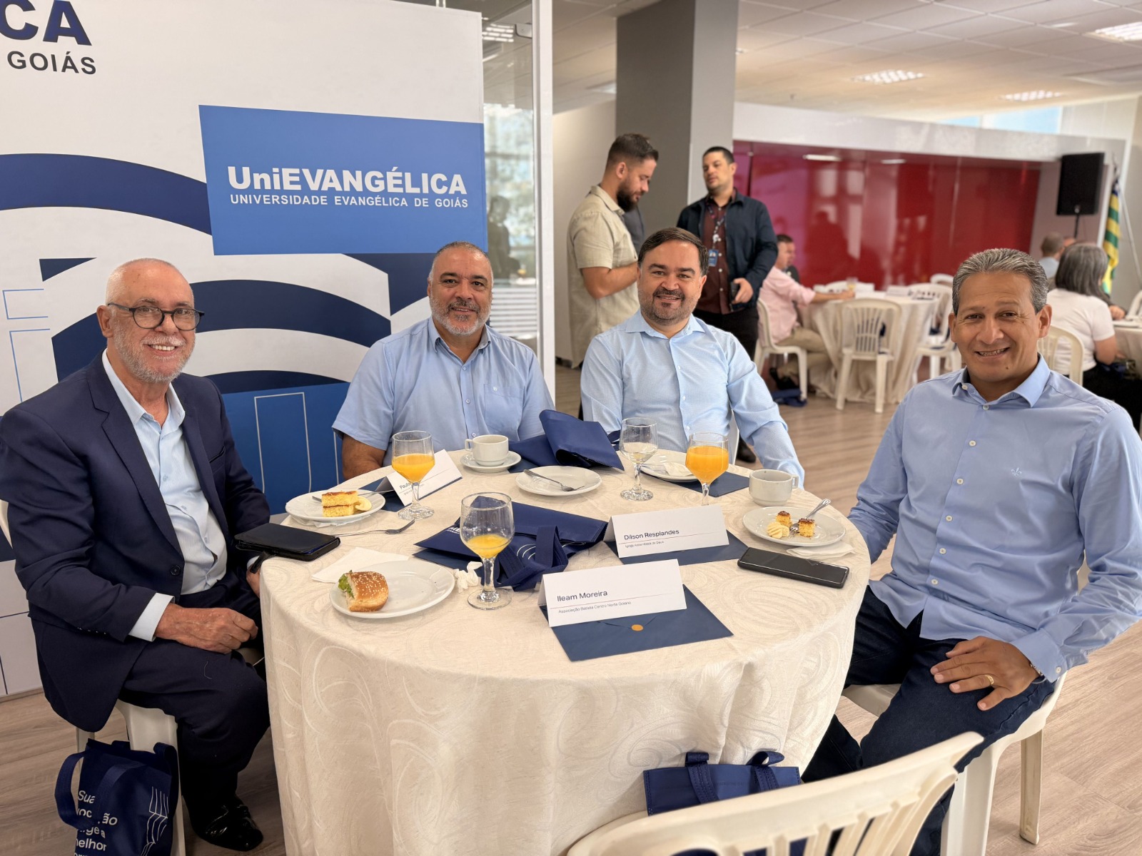 O encontro contou com a presença de autoridades institucionais, entre elas o presidente da AEE, Dr. Ernei de Oliveira Pina, o reitor da UniEVANGÉLICA, professor Carlos Hassel Mendes, além dos pró-reitores Sandro Dutra e Daniel Gonçalves.