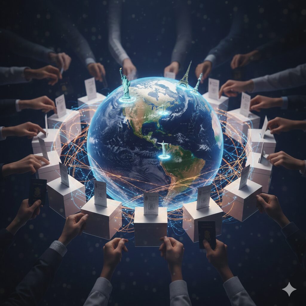 Por meio do voto, até o final do ano, mais de 1,5 bilhão de pessoas espalhadas por todos os continentes irão às urnas buscando assegurar direitos básicos, ordem e progresso, em disputas eleitorais em cerca de 60 países.