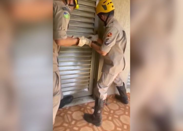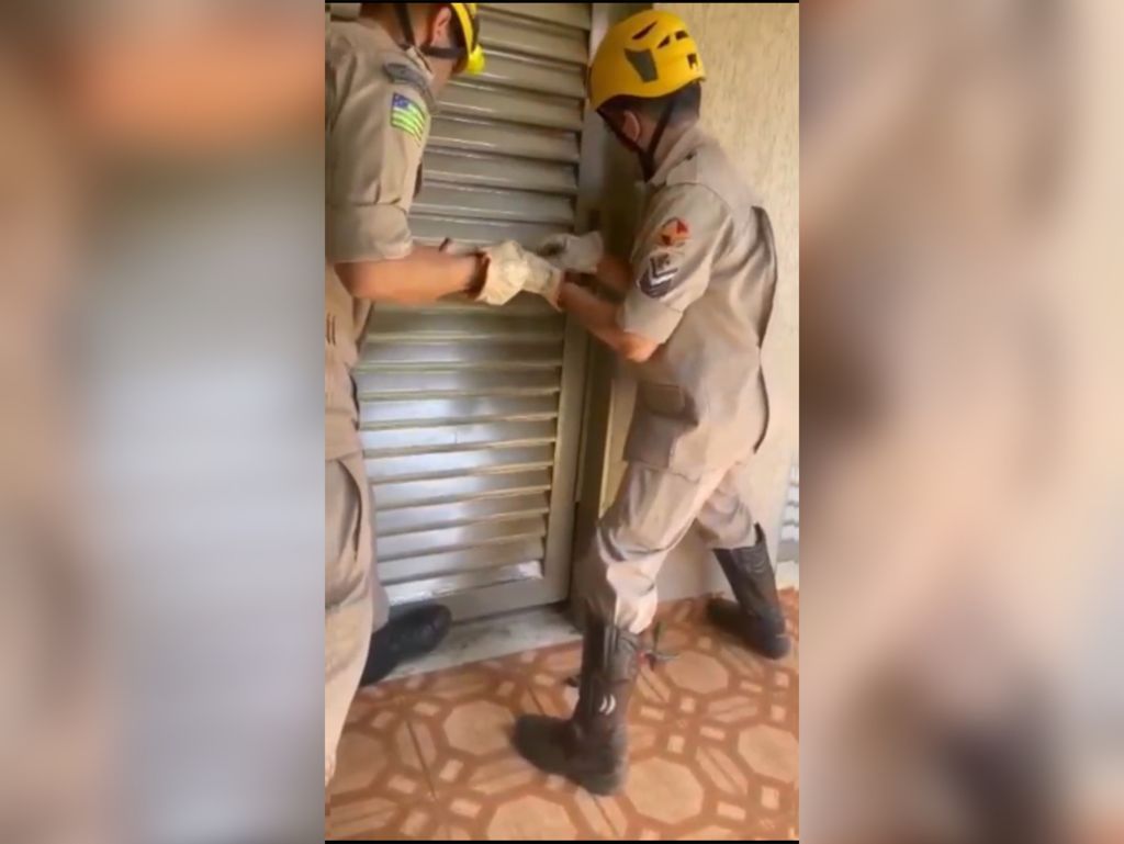 Com bastante cuidado e orientando a criança por trás da porta, os bombeiros conseguiram abrir e resgatar o garotinho.