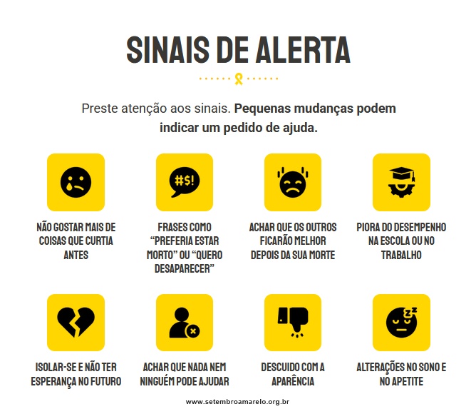 Saber quais as principais causas e as formas de ajudar pode ser o primeiro passo para reduzir as taxas de suicídio no Brasil, onde atualmente 42 pessoas por dia tiraram a própria vida. Surgiu então um outro desafio: falar com responsabilidade, de forma adequada e homologada ao que recomendam as autoridades de saúde, para que o objetivo de prevenção seja realmente eficaz. (www.setembroamarelo.org.br)