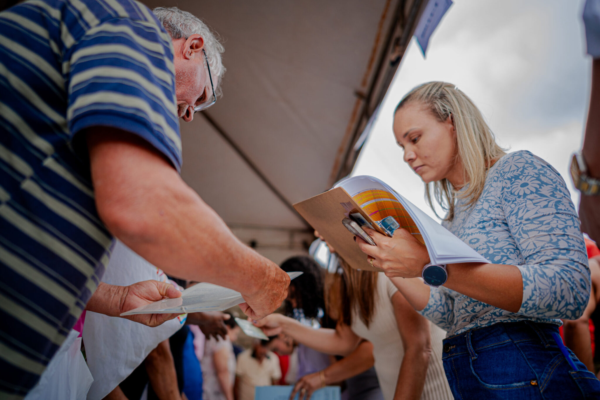 O senhor Luiz passou por três cirurgias cardíacas e sentou-se na primeira fila de cadeiras para não só receber a sua escritura, como também viver cada minuto de uma virada de página na história dele e da coletividade.