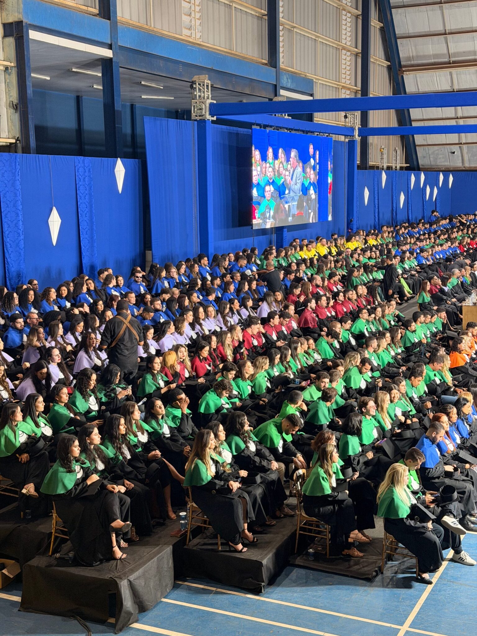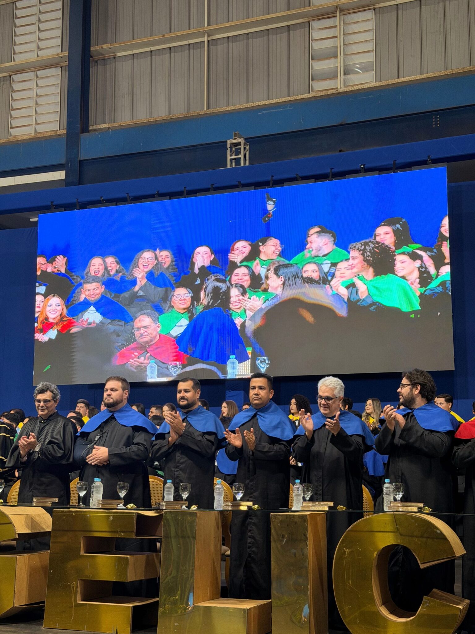 A cerimônia foi encerrada com a chamada oficial dos cursos, sob aplausos intensos de familiares e amigos que lotaram o ginásio. Entre eles, a emoção era visível.