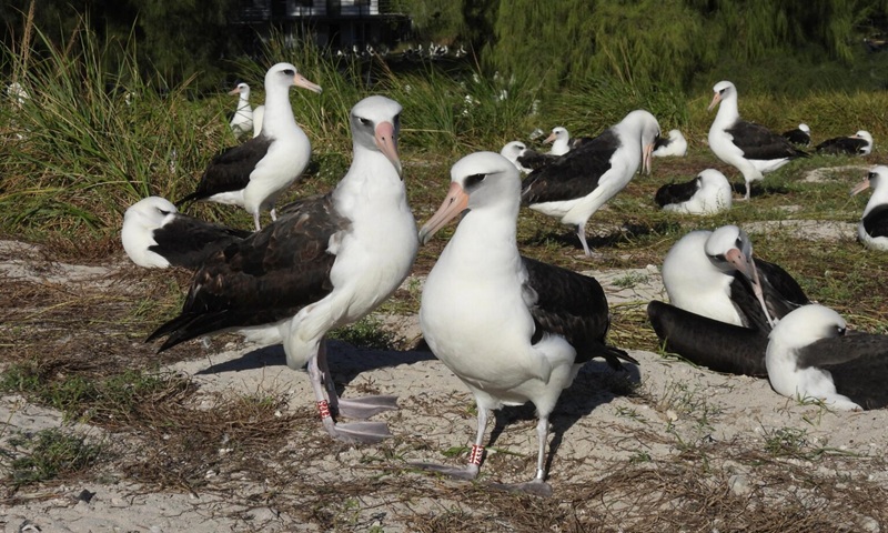 O Atol de Midway abriga cerca de 600 mil casais de albatrozes que chegam anualmente para se reproduzir, tornando-se o principal berçário de albatroz-de-laysan no mundo. Além disso, a região também recebe o albatroz-patinegro, conhecido como albatroz-de-pés-negros (Phoebastria nigripes).